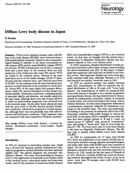 1990年、小阪先生は日本で報告された37剖検例をまとめて、論文「Diffuse Lewy body disease(DLBD:びまん性レビー小体病)in Japan」を発表しました。